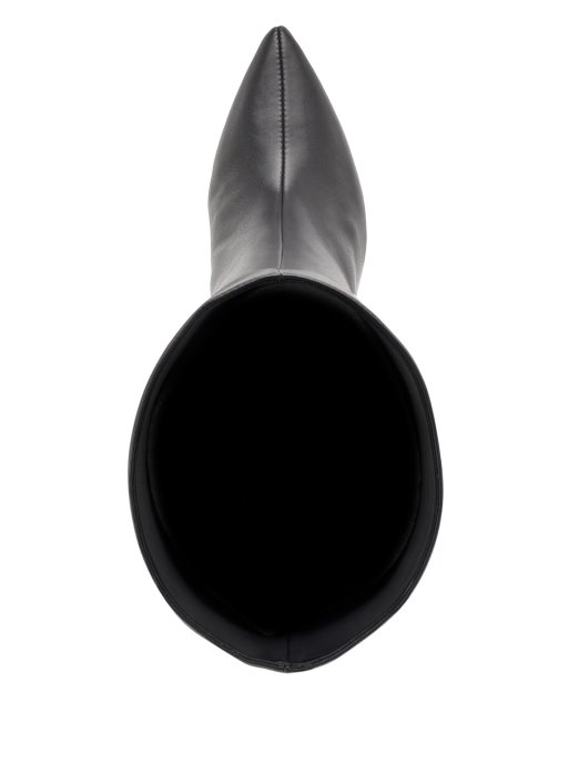 Ove Elegantne čizme Koje Morate Imati Imaju Siluetu Do Koljena, šiljati Vrh, Stiletto Petu I Prostran Kroj S Dizajnom Na Navlačenje. Dostupan U Umjetnoj Lakiranoj Koži Ili Krokodilu.