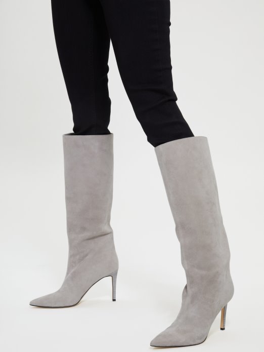 Ove Elegantne čizme Od Umjetnog Antilopa Koje Morate Imati Imaju Siluetu Do Koljena, šiljati Vrh, Stiletto Petu I Prostran Kroj S Dizajnom Na Navlačenje.