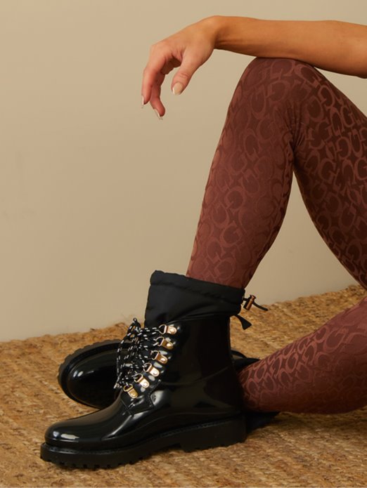 Spremne Za Kišu, Ove Gležnjače Dizajnirane Su S Lakiranom Gumenom Vanjštinom I Najlonskom Unutrašnjosti S Kopčanjem Na Vezice Na Vrhu. Upotpunjen Vampom Na Vezanje, Potplatom S Ušima I Trakom S Logotipom Straga.