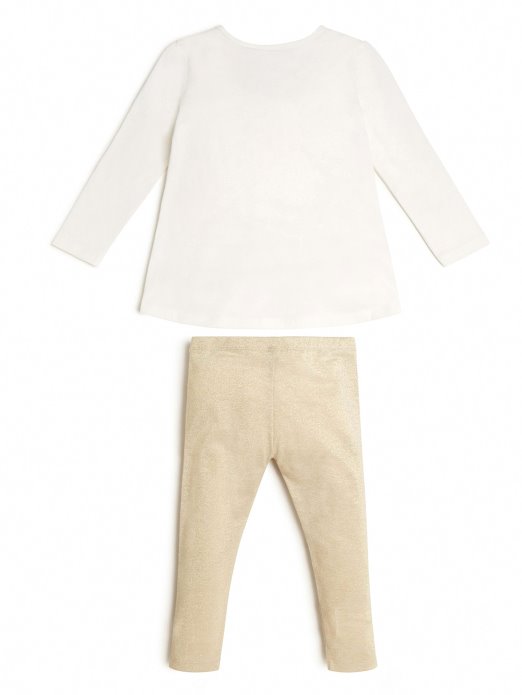 Neka Blista Cijeli Dan U Ovom Odgovarajućem Kompletu Koji Dolazi S Košuljom Dugih Rukava Sa Zabavnim Logotipom I Odgovarajućim Metalik Tajicama Na Navlačenje.