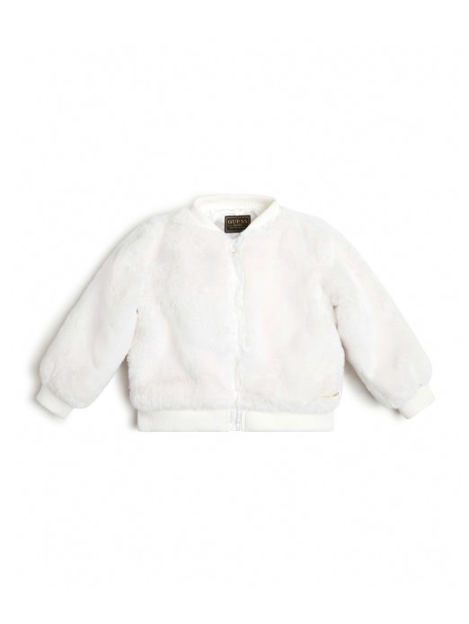 Za Buduće Guess Djevojke, Ova Letačka Jakna Od Umjetnog Krzna Ima Kontrastni Dizajn Logotipa Na Leđima S Bisernim Detaljima. Zajedno S Rebrastim Rubom I Zatvaračem Na Patentni Zatvarač.