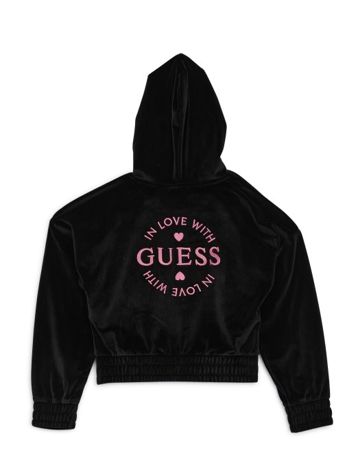 Preslatka Gornja Odjeća Za Nju. Ova Jakna Od Samta Ima Pričvršćenu Kapuljaču, Izvezeni Logotip Na Leđima, Spuštena Ramena, Duge Rukave I Obrub Od Smoke. Zatvaranje Na Patentni Zatvarač.