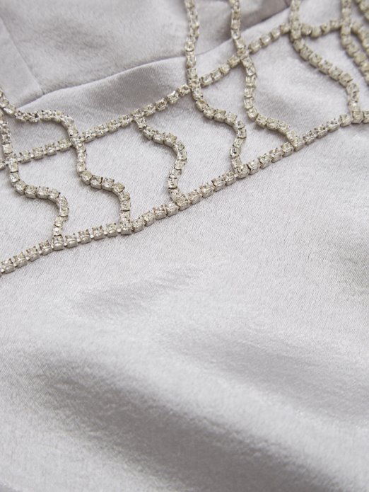 Prihvatite Te čarobne Trenutke U Ovoj Metalik Satenskoj Haljini S V-izrezom Na Halterima I Gornjim Dijelom Steznika Na Remenčiće S Detaljima Od Kamenčića I Kopčama U Obliku Jastoga. Sadrži Recikliranu Plastiku.