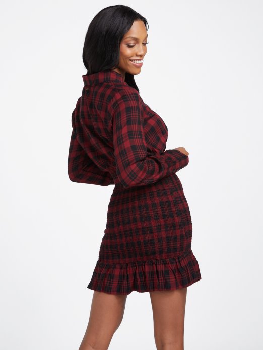 Ažurirana Opcija Košulje, Ovaj Stil Dugih Rukava Ima Presavijeni Ovratnik I V-izrez Završen Kopčanjem S Prednjim Gumbima. Upotpunjena Neočekivanom Smokiranom Suknjom S Naboranim Donjim Rubom.