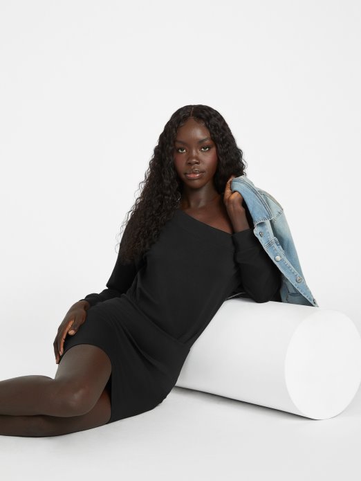 Instant Klasik Ormara, Ova Haljina Dizajnirana Je Od Mekog Pletiva I Ima Dekolte S Otvorenim Ramenima, Duge Rukave I Pripijenu Suknju.