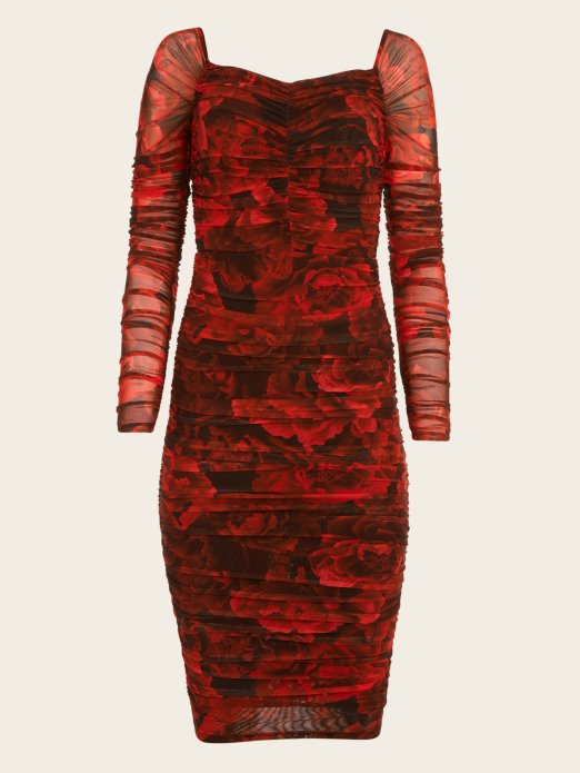 Pokazivanje Je Lako U Ovoj Zadivljujućoj Haljini Dugih Rukava Dizajniranoj Od Mrežaste Konstrukcije S Otiskom Preko Cijele Strane S Naborima, Izrezom Oko Vrata I Nevidljivim Patentnim Zatvaračem Na Leđima.