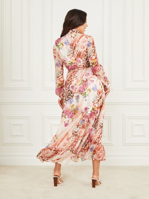 Ruža Svilena Haljina S Omotom Ruža Sjena Print Pogodi Kupnja