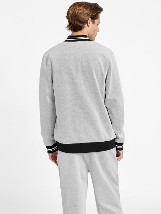 Slobodno Trčite U Ovom Svakodnevnom Ključu. Ova Letačka Jakna Ima Teksturiranu Izradu, Prugaste Ukrase U Sveučilišnom Stilu, Izvezeni Logo I Patentni Zatvarač S Prednje Strane.