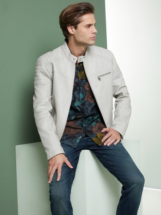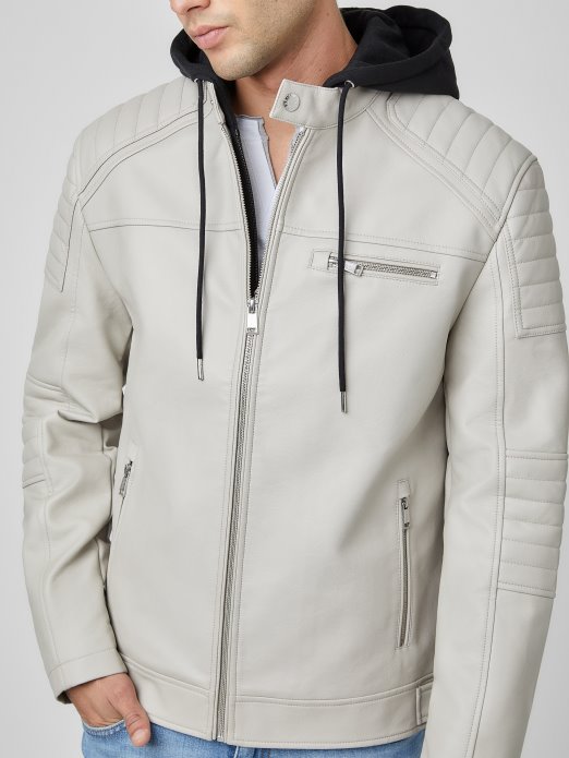 Upotpunite Svoj Izgled Ovom Biciklističkom Jaknom Od Umjetne Kože Koja Ima Prošivenu Podstavu Duž Dugih Rukava I Uklonjeni Pamučni Umetak S Kapuljačom. Prsni Džep S Patentnim Zatvaračem I Prednji Patentni Zatvarač.