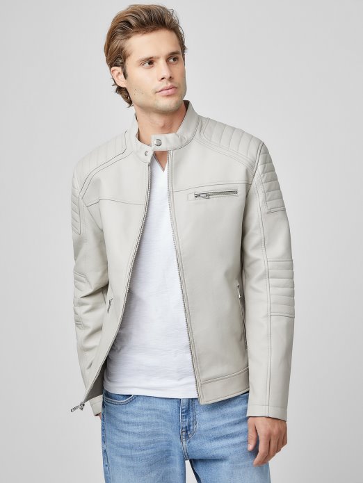 Vintage Bijela Guess Shopping Daniel Biciklistička Jakna Od Umjetne Kože