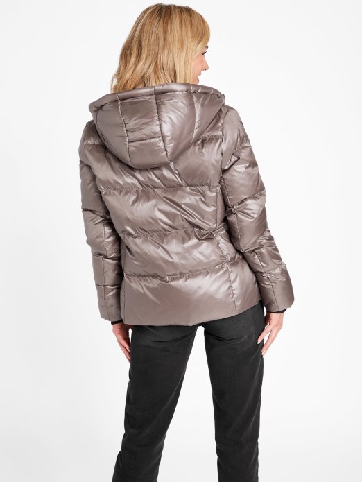 Izrađena Od Pravog Papira Za Dodatnu Toplinu, Ova Elegantna Pufer Jakna Izrađena Je Od Najlonske Konstrukcije Presvučene Metalom, S Pričvršćenom Kapuljačom S Uklonjivim Obrubom Od Umjetnog Krzna, Zatvaračem Na Patentni Zatvarač I Bočnim Džepovima Na Patentni Zatvarač.