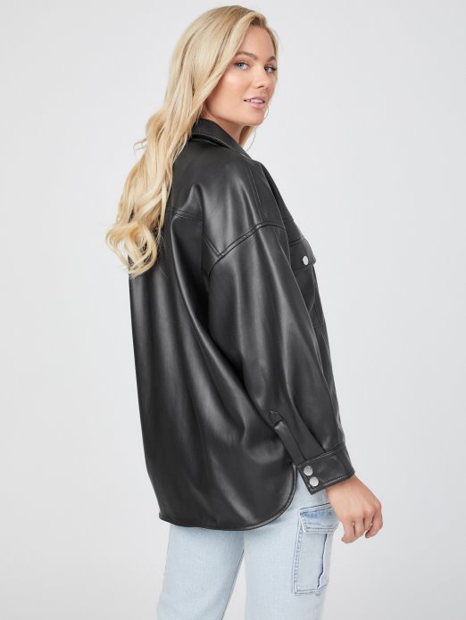 Posegnuti Za Modernim Rubom. Ova Jakna Od Umjetne Kože Dizajnirana Je U Opuštenoj Silueti Sa Spuštenim Ramenima, Preklopljenim Ovratnikom I Dvostrukim Džepovima Na Prsima. Prednje Zatvaranje Na Gumbe.