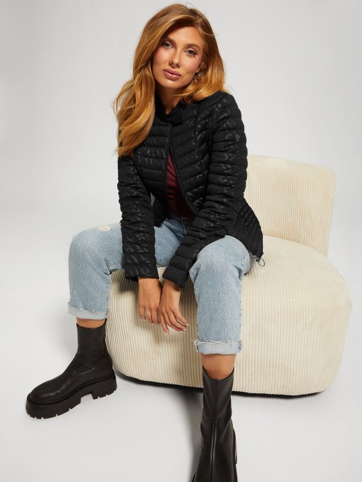 Jet Crna Guess Shopping Vona Prošivena Jakna S Logotipom