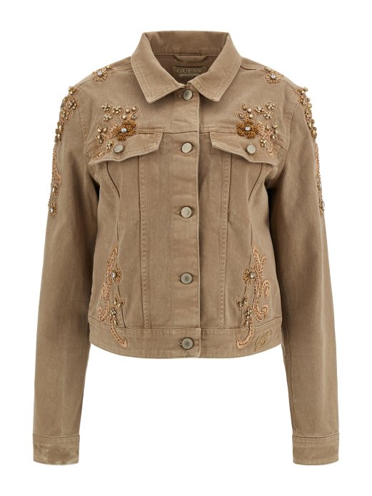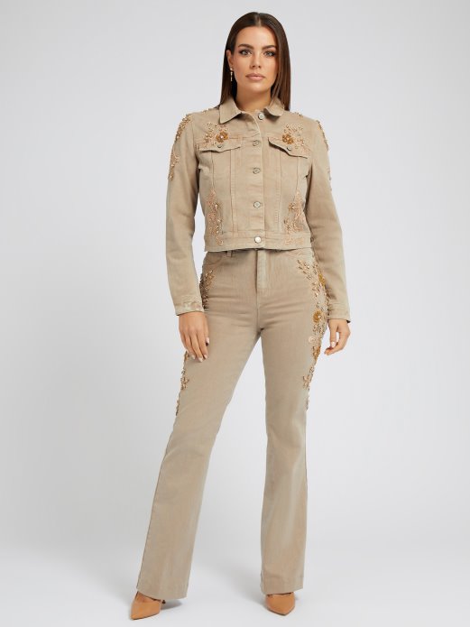 detalji Tkanine: Cvjetni Vez Sa Kamenčićima.