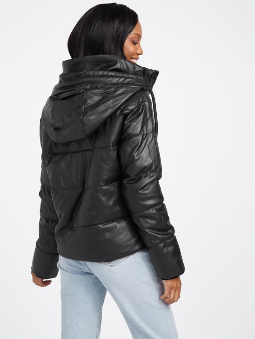 Vadley Pufer Jakna Od Umjetne Kože Jet Crna Guess Shopping