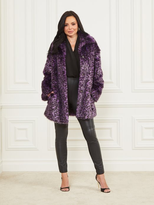 Ostanite živahni I Pronađite Toplinu Uz Ovaj Kaput Od Umjetnog Krzna. Izrađena S Uzorkom životinja, Ovratnikom I Metalnim Kopčama.