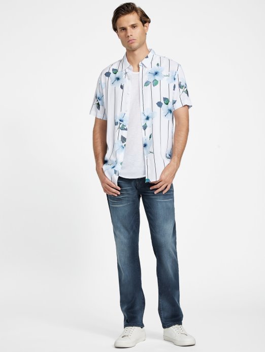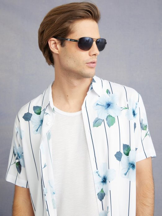 Ponesite Tropsku Avanturu Sa Sobom Bilo Gdje Uz Ovaj živahni Dodatak Ormaru. Klasična Košulja Na Kopčanje S Cvjetnom Grafikom, Tankim Okomitim Prugama, Ovratnikom I Kopčanjem Na Prednje Gumbe.