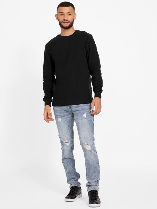 Vafel Pletena Majica Dugih Rukava S Obojenim Dizajnom, Prednjim Logotipom I Okruglim Izrezom.