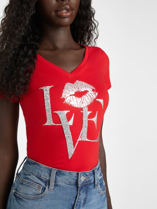 Guess Shopping Ragbi Crvena Eko Cece Ljubavna Majica S V-izrezom