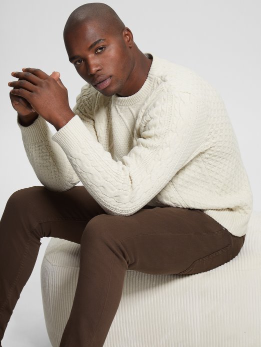 Savršeno Za Sezonu Pred Nama. Teksturirani Kabelski Pleteni Pulover S Klasičnim Okruglim Izrezom I Dugim Rukavima. Sadrži Reciklirani Poliester.