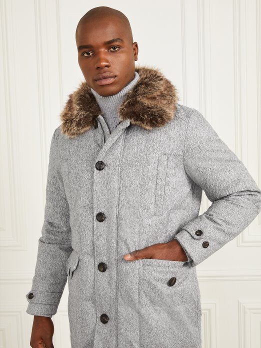Jednostavna Gornja Odjeća, Ova Duga Pufer Jakna Nezaobilazna Je Za Hladne Dane. Izrađen Od Kepera U Obliku Riblje Kosti, Prošiveni Dizajn, Ovratnik Od Umjetnog Krzna, četiri Džepa, Zakrpa S Logotipom I Kopčanje Patentnim Zatvaračem Sprijeda.