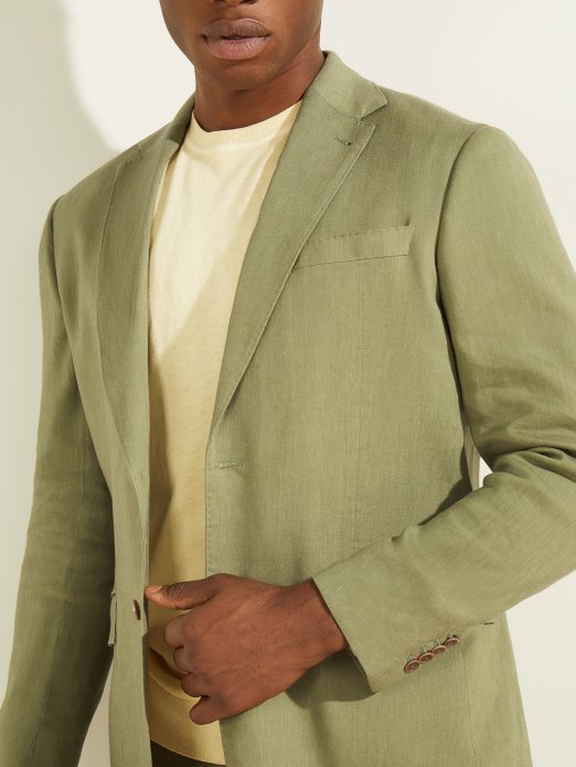 Idealan Za Prilike S Toplim Vremenom, Ovaj Lagani Blejzer Od Mješavine Lana Ima Urezani Ovratnik, Dvostruko Kopčanje Na Prednje Gumbe I Zaobljene Donje Rubove. Upotpunjen S četiri Unutarnja Džepa I Svilenkastom Postavom.