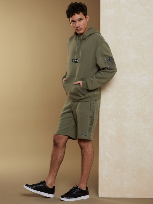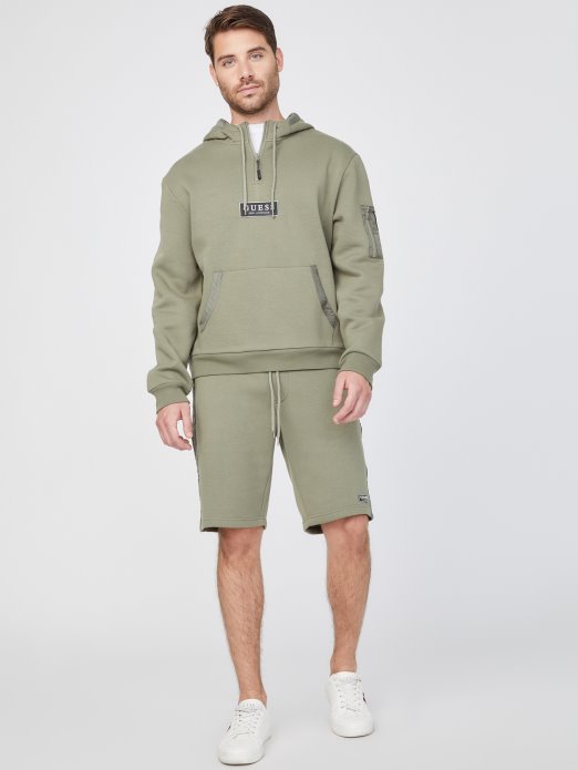 Klasične Kratke Hlače Od Flisa S Uzicom U Struku, Dvostrukim Bočnim Džepovima I Logotipom. Napravljen Od Pamučnih Vlakana.
