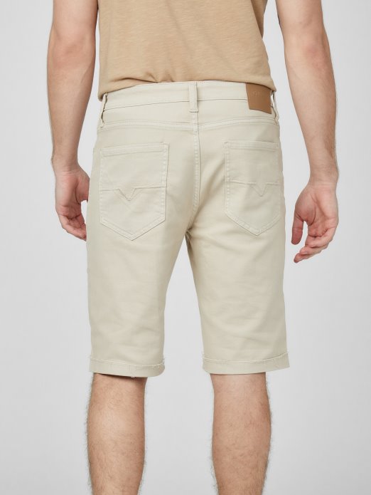 Osvježite Svoj Izgled Ovim Traper Kratkim Hlačama Ravnih Nogavica, Uskog Kroja, Uznemirujuće Prednje Strane I Pohabanih Okrenutih Manžeta.