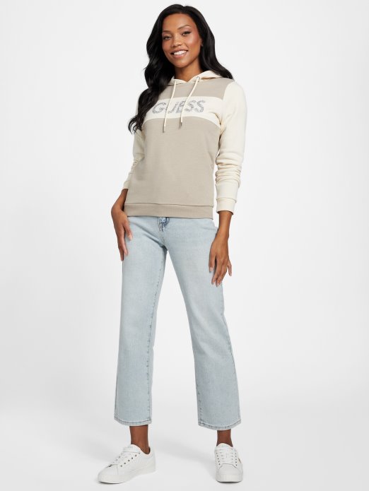 Albie Crushed Stone Logo Hoodie Baršun Taupe Multi Guess Shopping