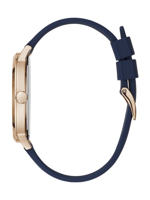 Ostanite Elegantni S Ovim Analognim Satom U Boji Ružičastog Zlata, S Tamnoplavim Silikonskim Remenom, Detaljima Logotipa I Odgovarajućim Kućištem U Boji Ružičastog Zlata.