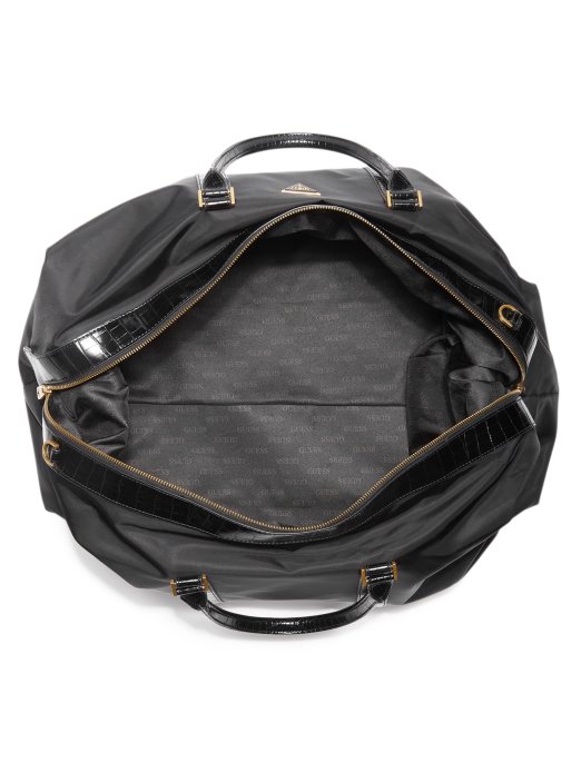 Dizajnirana Od Glatkog Poliesterskog Najlona, ova Putna Torba Ima Prostrani Glavni Pretinac I Obrub Od Umjetne Kože S Reljefom Krokodila Duž Gornjeg Patentnog Zatvarača I Dvostruke Gornje Ručke.