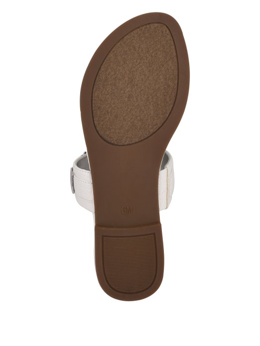 Par Povišenih Ravnih Sandala S Završnim Slojem Od Umjetne Kože I Detaljnim Lančićem S Emajliranim Logotipom. Petlja Za Prste.