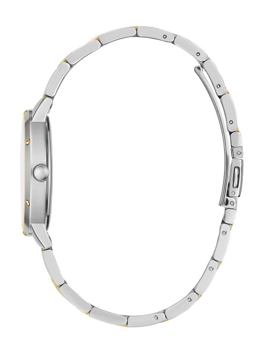 Optimizirajte Svoj Dan S Ovim Dvobojnim Analognim Satom Koji Ima Vijčane Elemente Oko Okvira, Srebrne I Zlatne Detalje Na Cijeloj Narukvici Od Nehrđajućeg čelika.