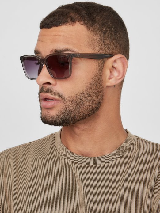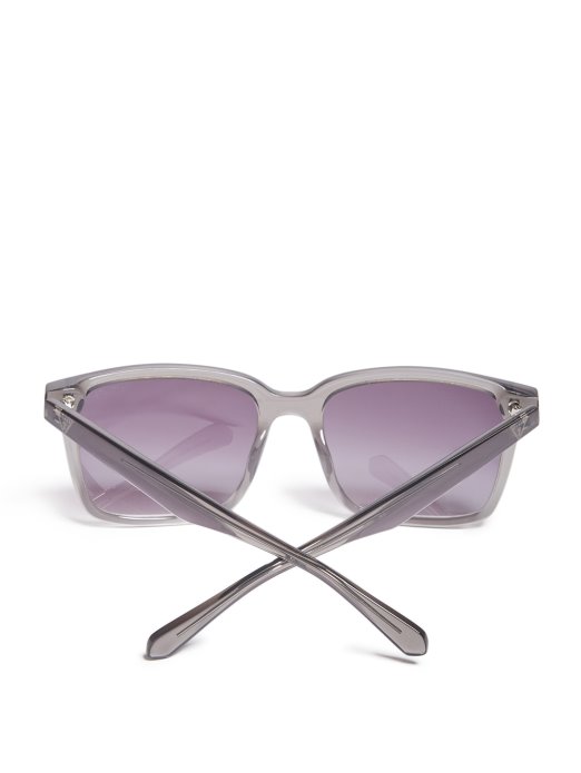 Uputite Se Prema Sunčevim Zrakama U Ovim četvrtastim Sunčanim Naočalama Oštrog Izgleda S Plastičnim Okvirom, Zatamnjenim Staklima I Trokutastim Logotipima Na Sljepoočnicama.