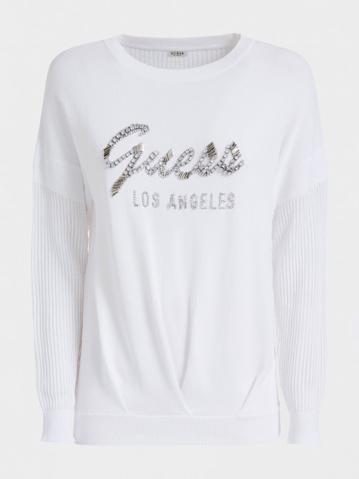 Guess Pulover S Prednjim Dijelom Logotipa Od Mješavine Viskoze Bijeli
