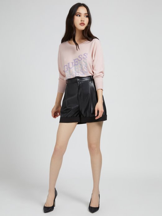 Guess Shopping Džemper S Logotipom Od štrasa Svijetloružičast