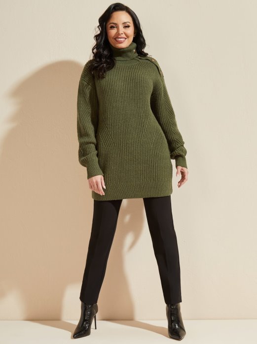 Guess Shopping Zeleni Marciano Gumbi Pulover Od Mješavine Vune