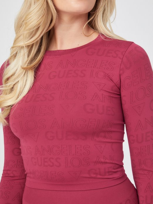 Kreni U Ovaj Aktivni Top Sa Suptilnim Printom Logotipa, Okruglim Izrezom I Dugim Rukavima.