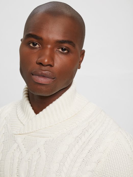 Povišena Toplina. Ovaj Džemper Od Mješavine Vune Ima Pletenu Prednju Stranu I Duge Rukave, šal Ovratnik I Rebrasti Obrub.
