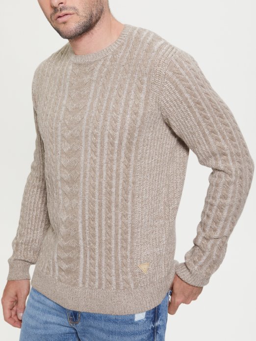 Phil Dvobojni Kabelski Pleteni Džemper Pogodna Kupovna Kombinacija Prirodni Vrijesak