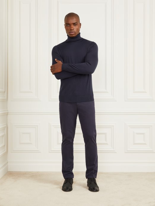 Pulover Od Merino Vune S Ovratnikom Plavi Elegantni Guess Shopping