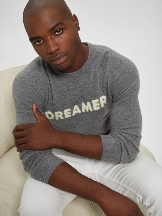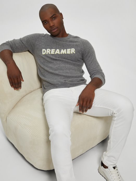 Za Sanjare. Izrađen Od Ultra-mekog Kašmira, Ovaj Džemper S Okruglim Ovratnikom Ima Inspirativan Dizajn Slogana.