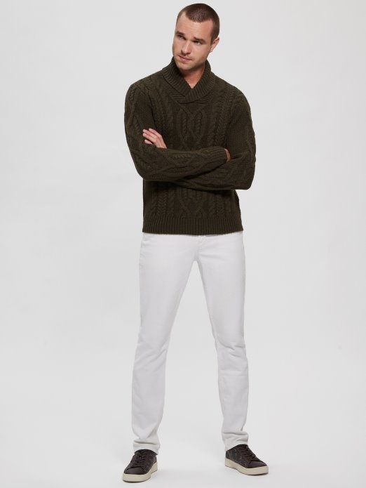Povišena Toplina. Ovaj Džemper Od Mješavine Vune Ima Pletenu Prednju Stranu I Duge Rukave, šal Ovratnik I Rebrasti Obrub.