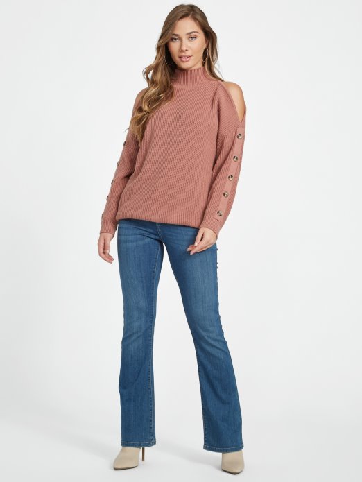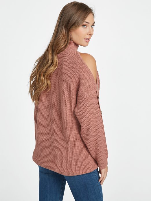 Prihvatite Hladnu Sezonu S Ovim Rebrastim Pletenim Džemperom S Dolčevitom S Detaljima Na Gumbima Niz Rukave Koji Otkrivaju Hladan Dizajn Ramena.